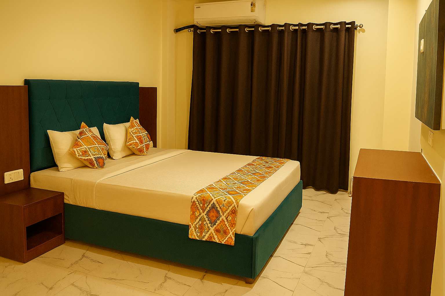 Our Standard Room is designed for guests seeking comfort at an affordable price. Equipped with all basic amenities, it ensures a cozy and relaxing stay. The warm interiors create a welcoming atmosphere after a day of exploring Varanasi. Perfect for solo travelers or short business visits, it balances simplicity with convenience.